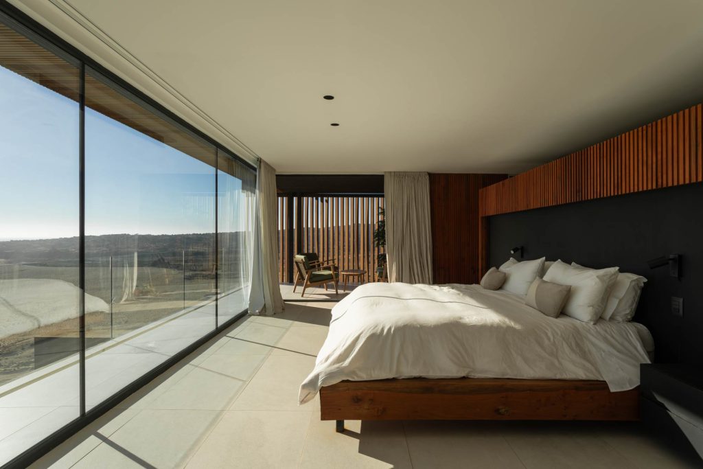 El segundo piso se destinó a las habitaciones, cada una equipada con su propio baño y balcón privado con una vista panorámica, generando de esta forma recintos individuales y autónomos que evocan la sensación de estar en un hotel.