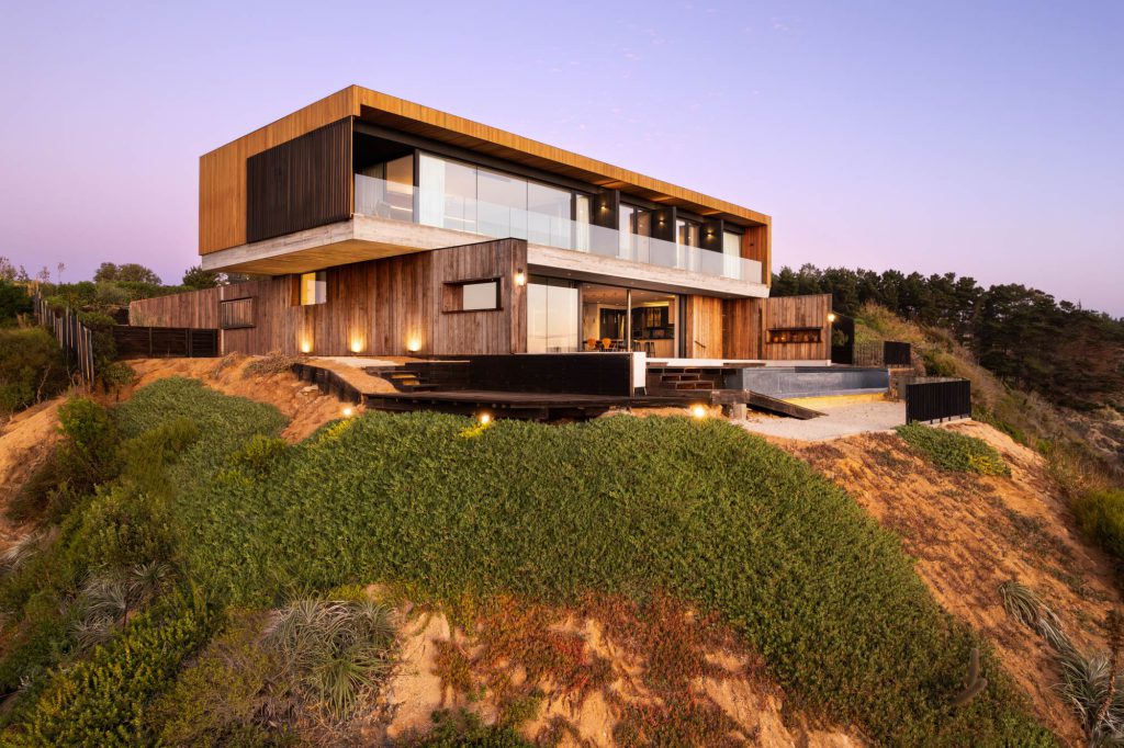 Ubicada al borde de un acantilado con impresionantes vistas al Océano Pacífico, Casa Alta es una vivienda de veraneo y de fin de semana situada 90 km al noroeste de Santiago, Chile. El entorno se caracteriza por la abundancia de flora y fauna nativa, y es reconocido por su singular belleza natural.